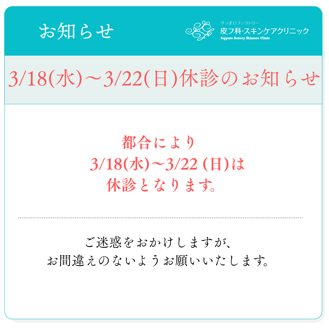 3/18(水)~3/22(日)休診のお知らせ